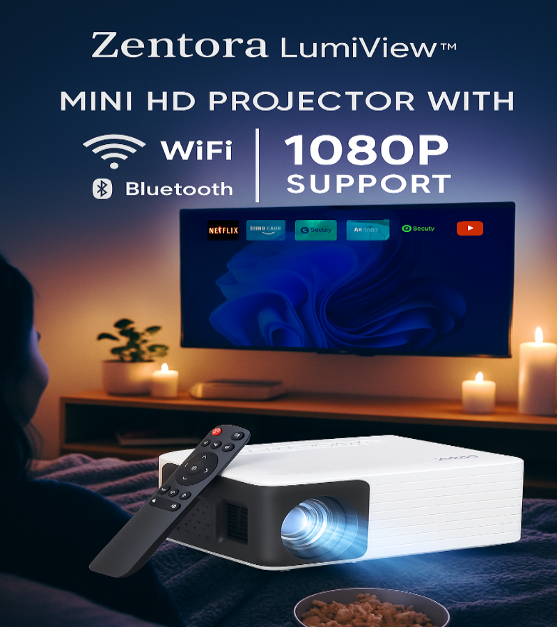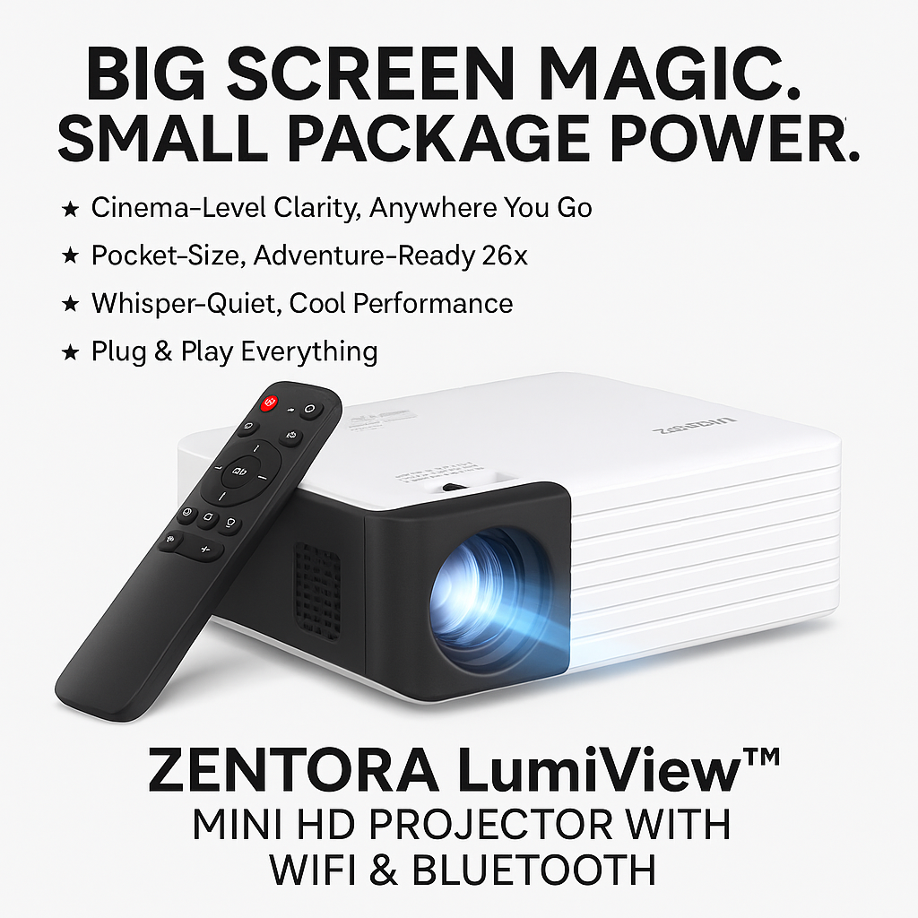 Zentora LumiView™ – Mini HD Projector with WiFi & Bluetooth